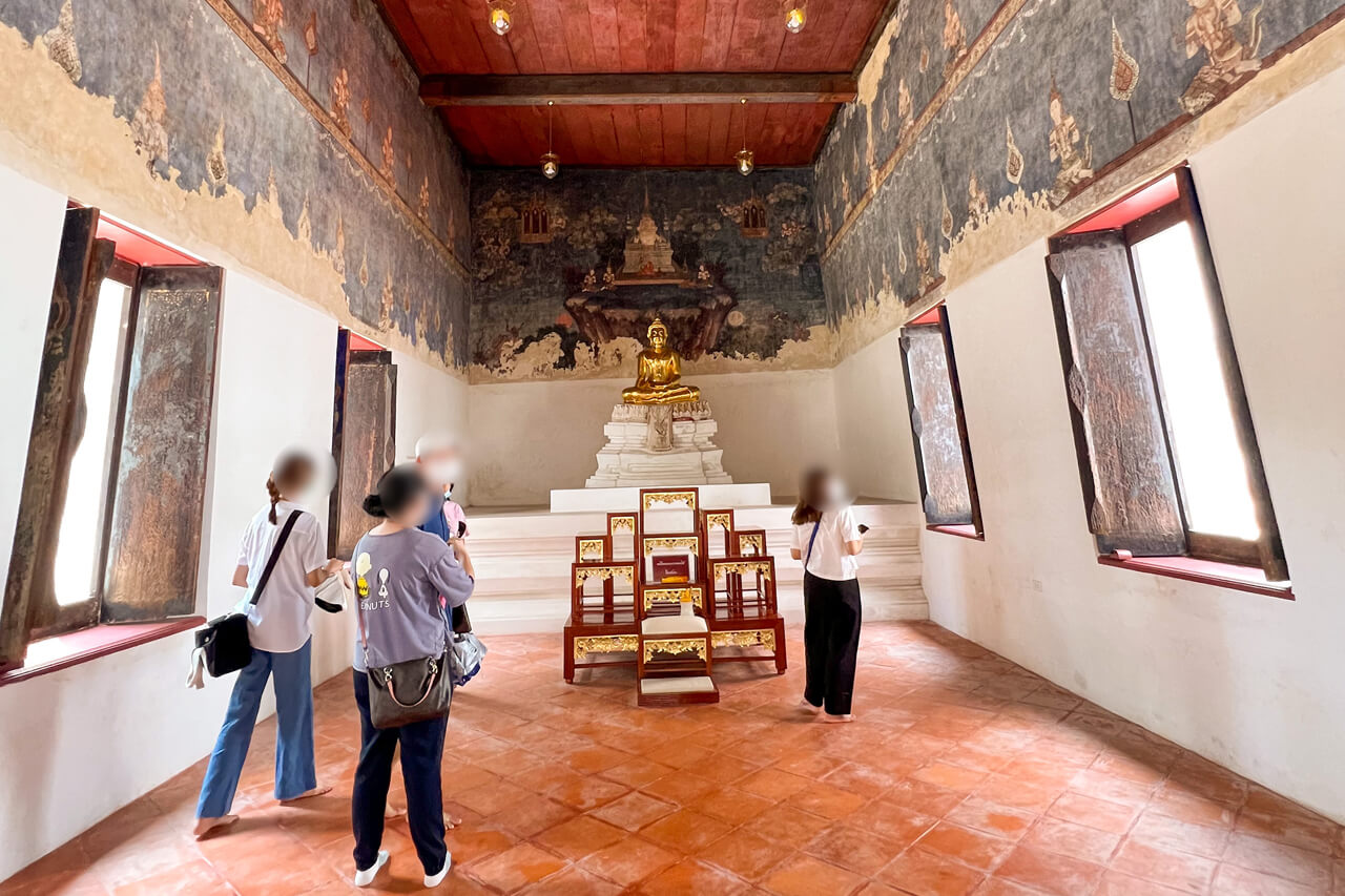ภายในวัดเต็มไปด้วยพระอุโบสถงดงาม ประดิษฐานพระพุทธศรีมงคลนวภูมิ พระประธานพระอุโบสถ นอกจากนี้ภายในศาลาสีขาวยังมีพระพุทธรูปอีกมากมาย สามารถเข้าไปกราบไหว้ขอพรเสริมสิริมงคล